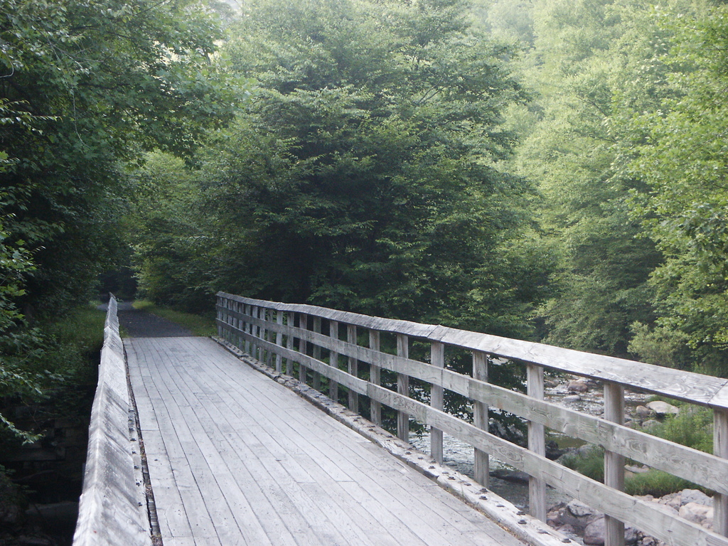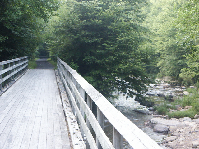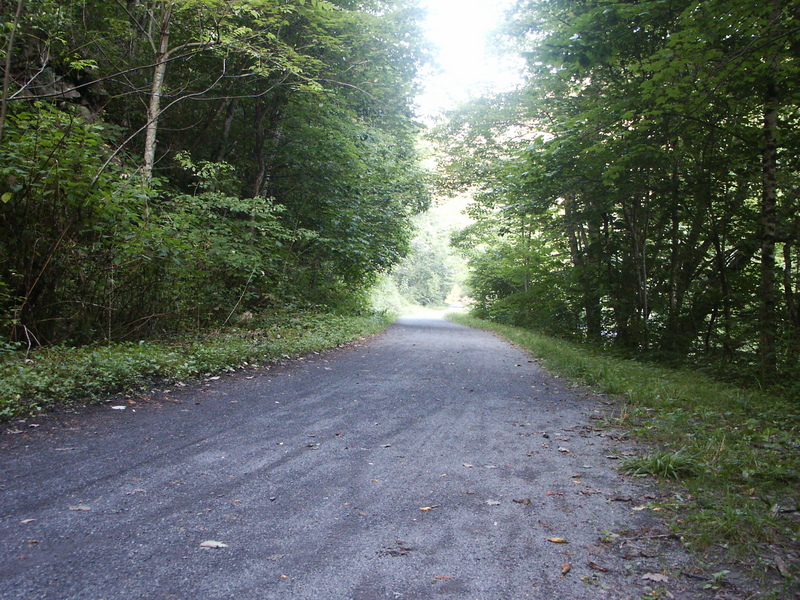 down out of the woods and intersected the Virginia Creeper Trail.