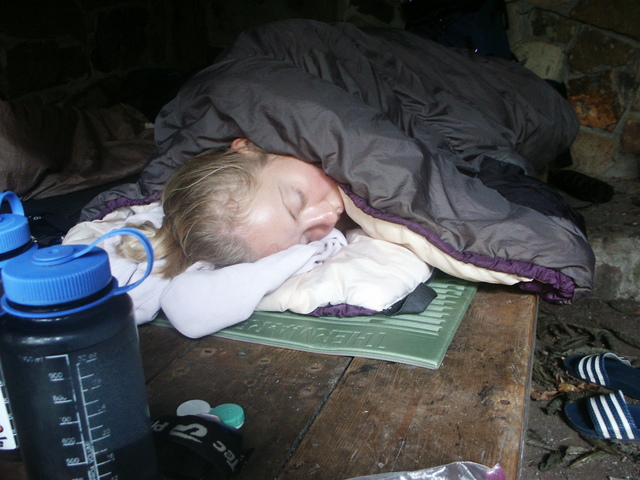 Sleep where the trail curverd around a medow