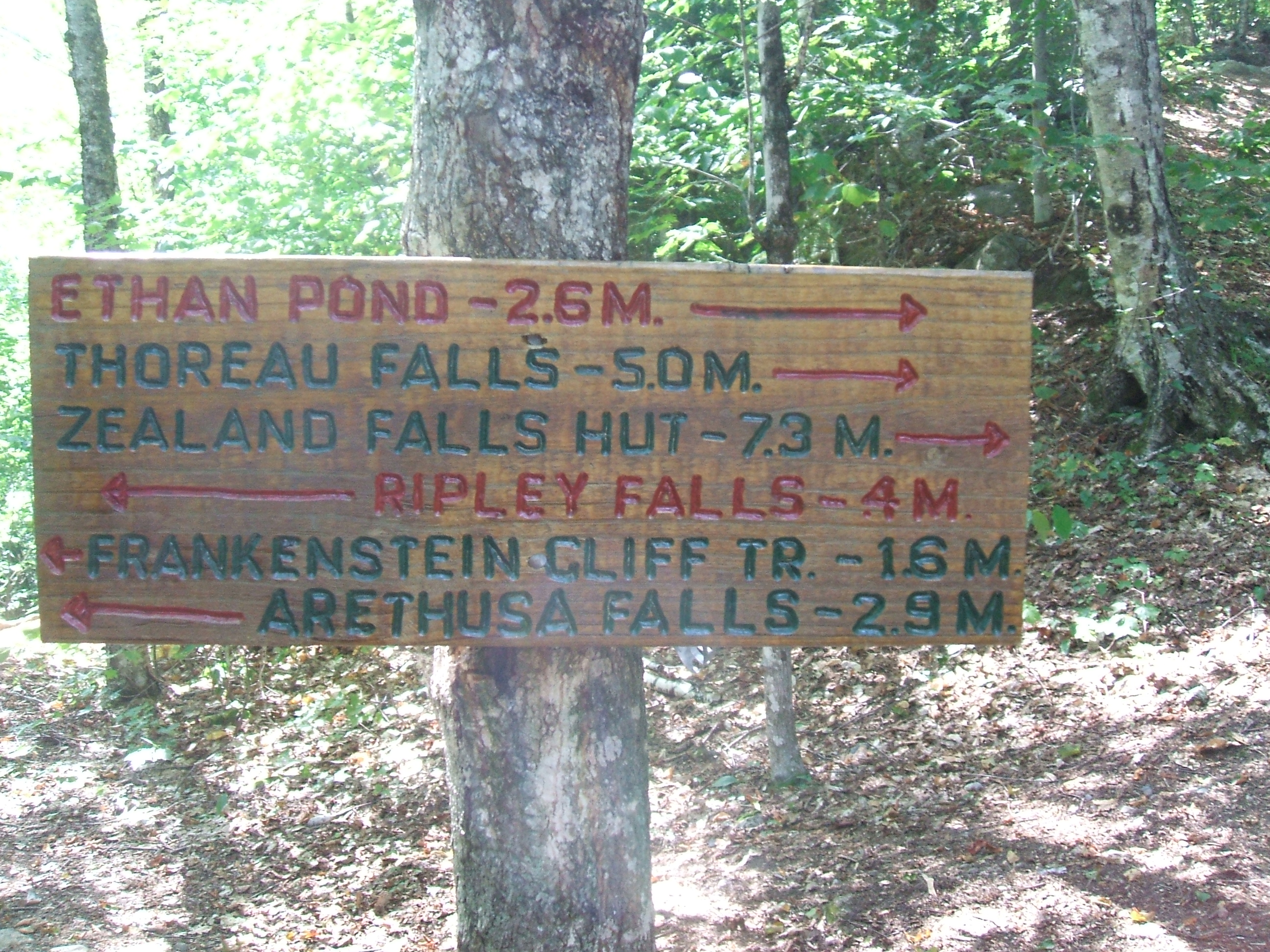 Ethan Pond 2.6 miles, Arethusa Falls 2.9 miles