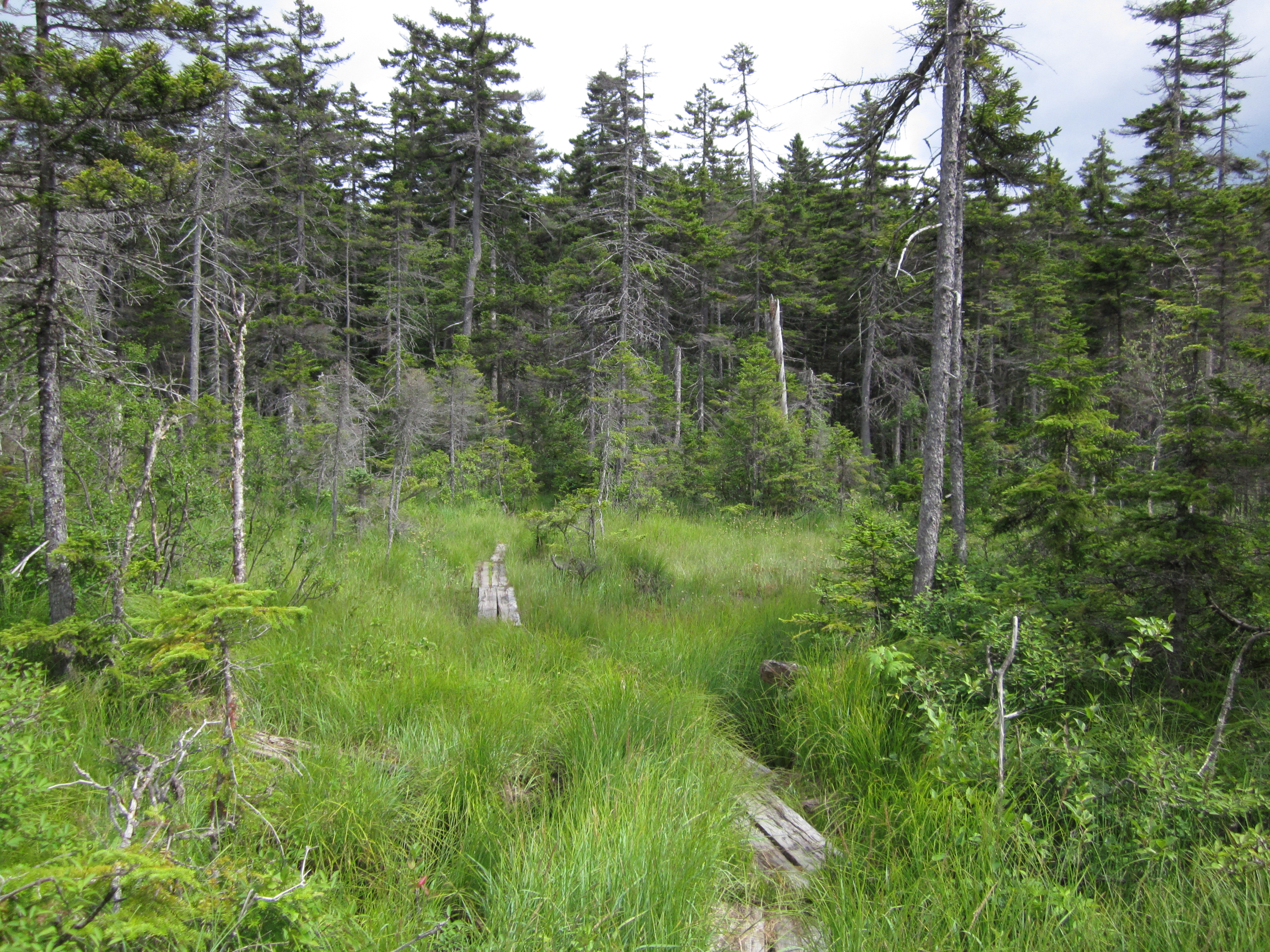 Bog crossing on Appalachian Trail.
