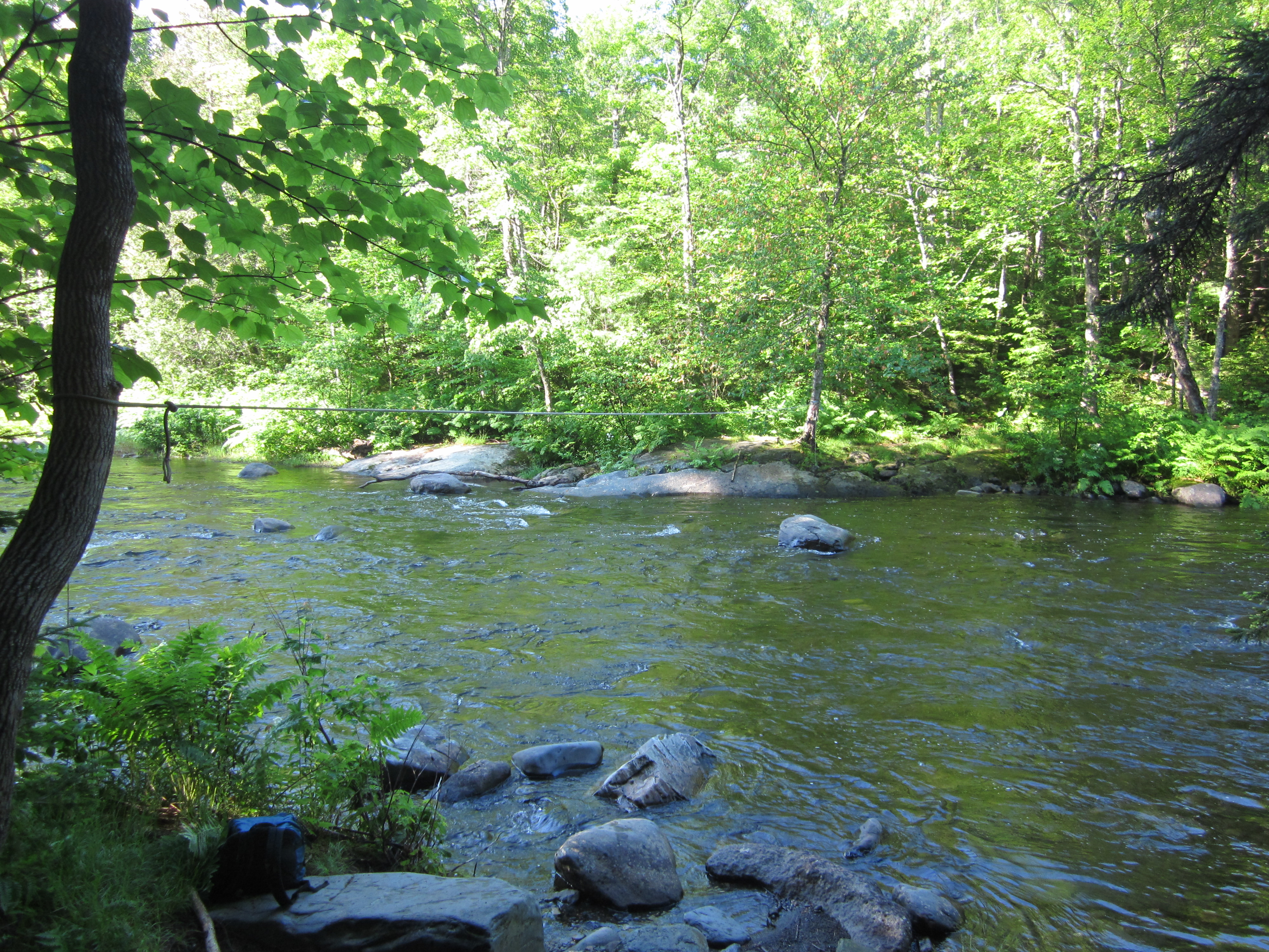 Ford, with rope over Big Wilson Stream. I was glad I had my scuba boots. This ford can be the most difficult in Maine.